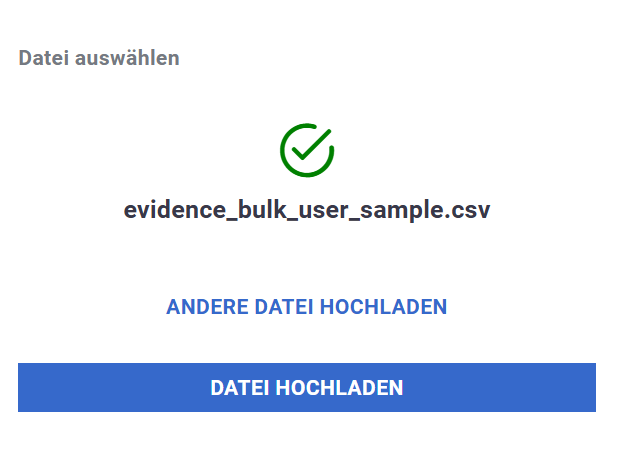 Der CSV-Upload-Dialog ermöglicht Administratoren, mehrere Benutzer in einem einzigen Schritt zu erstellen.