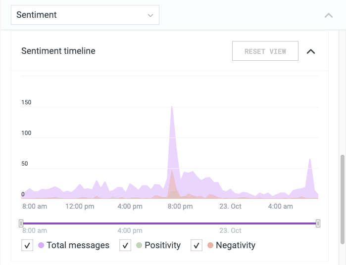 To refresh the Sentiment Timeline, click the Reset View button at the top-right corner of the sentiment timeline view.