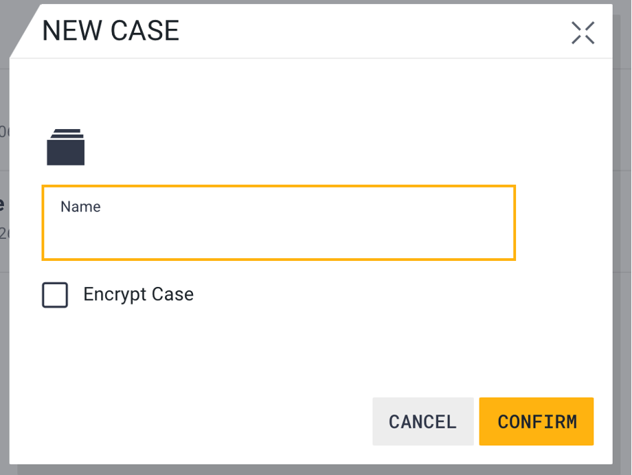 Enter a case name and choose whether to enable encryption for the case and its files.