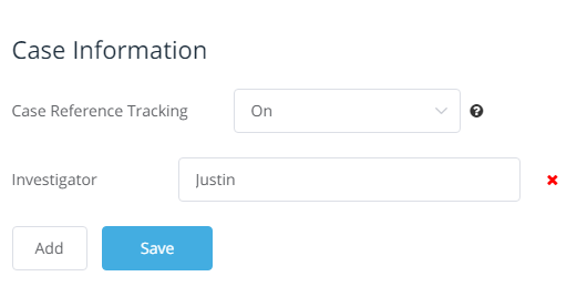 2. Specific Case Information Fields - as shown above, we have created an Investigator field and set it to Justin. This field will then be submitted with every request when the data is forwarded.