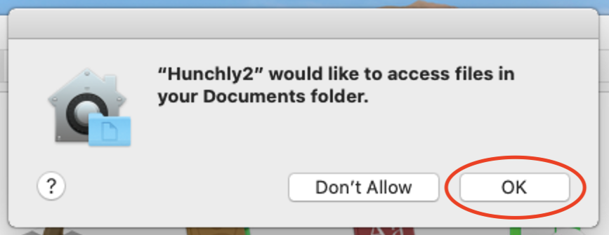 Open the Hunchly Dashboard. A message will appear requesting access to your Documents folder - click "OK"