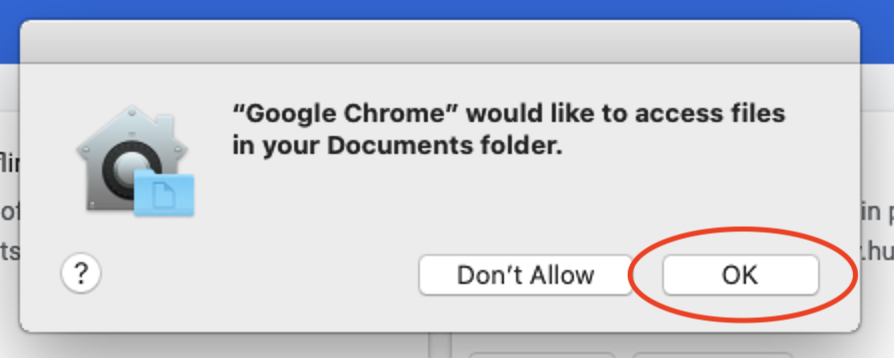 - Open Chrome. A message will appear requesting access to your Documents folder - click "OK"