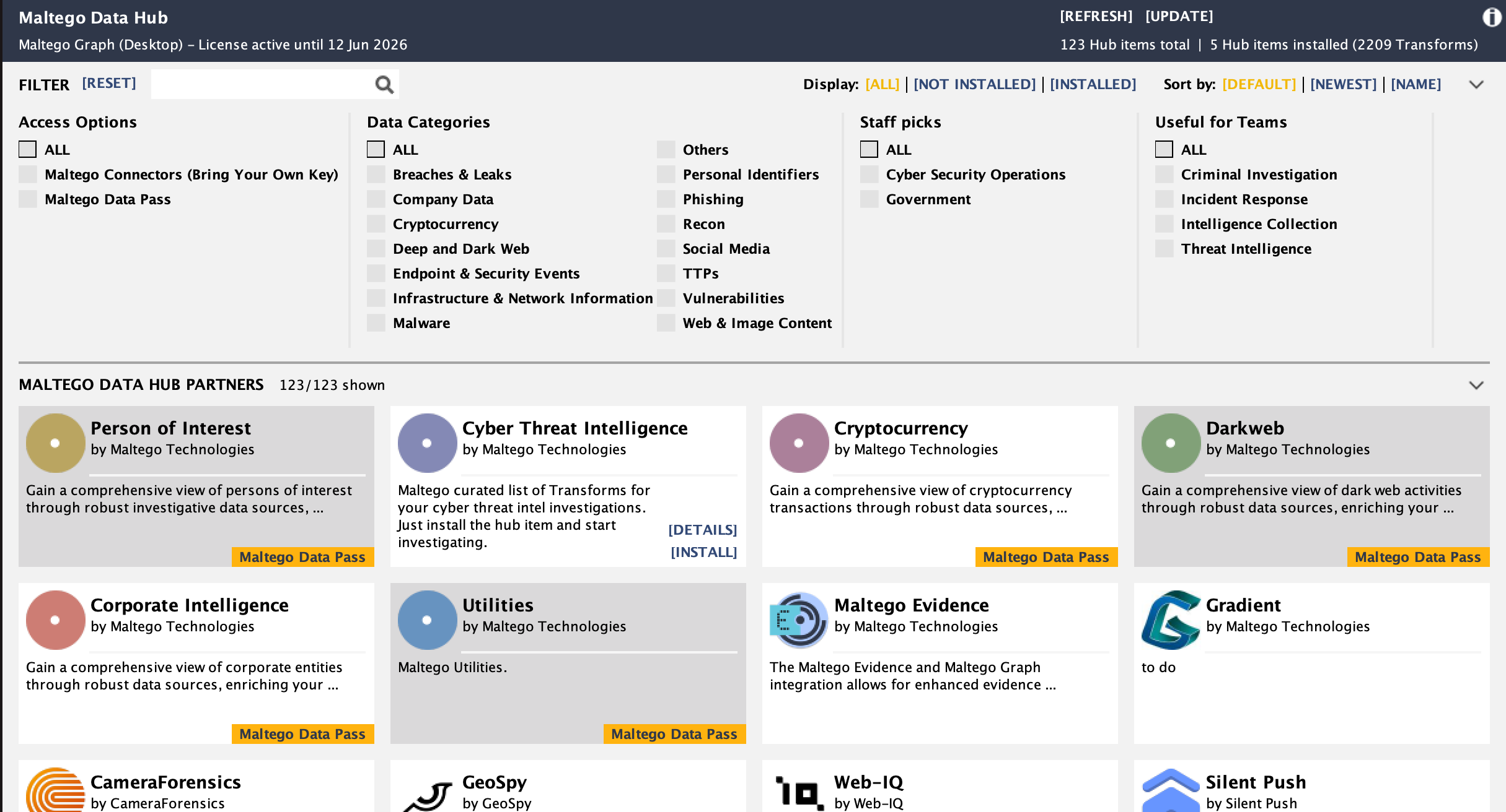 - In Maltego Data Hub, select the data provider and click install.